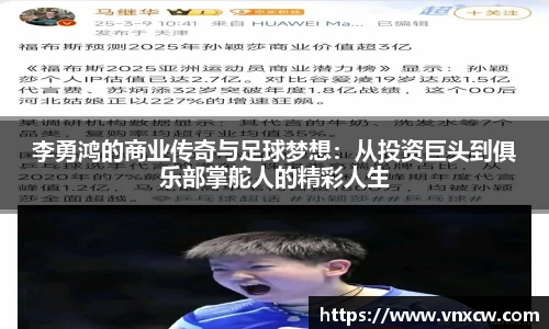 综上所述,李勇鸿的人生历程充分展示了一位杰出企业家的魅力和担当。从早年的艰辛奋斗,到如今经营俱乐部获得认可,每一步都是他智慧与汗水交织而成。而他的商业成就与对足球激情相辅相成,共同构建起丰富多彩的人生画卷。